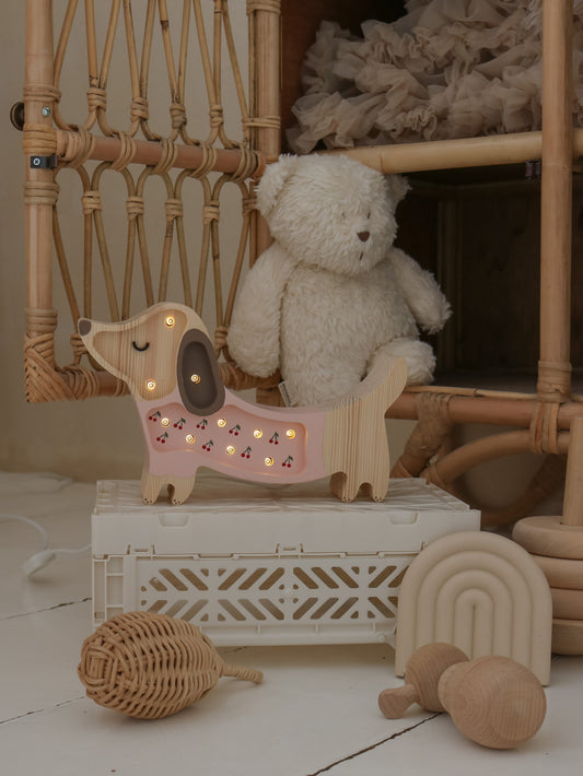 Little Lights, Yövalo MINI Puppy, Cherries on Pink