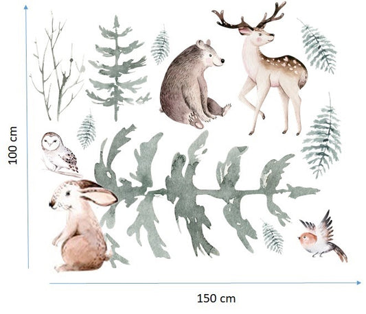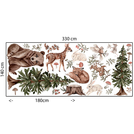 Seinätarra 140cm, Forest Animals, Bear, 2-Laatu
