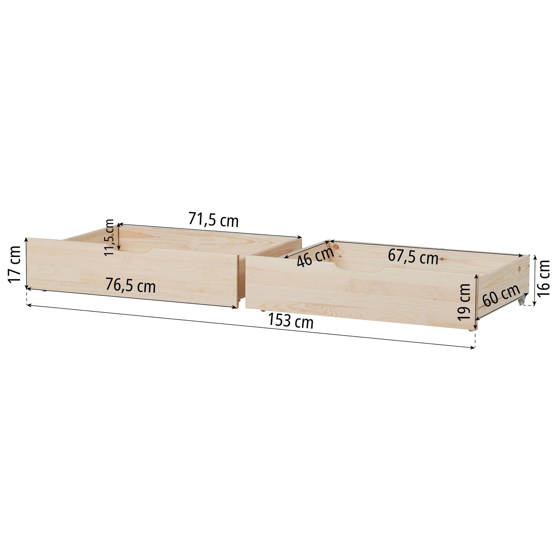 Dimensions : 70 x 160 cm, external dimensions: 166 x 65 x 76 cm, Height under the bed: 20 cm