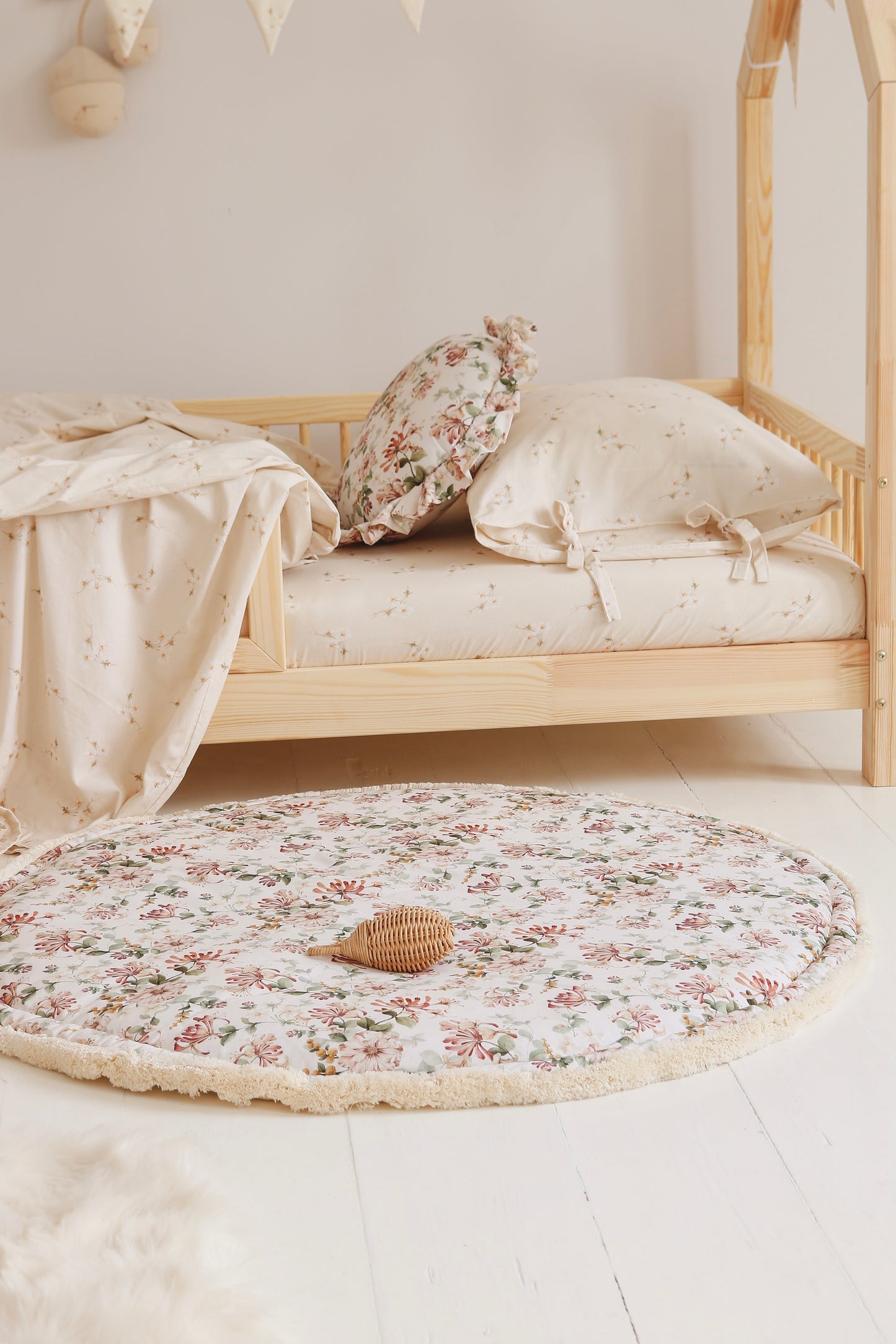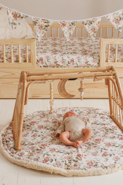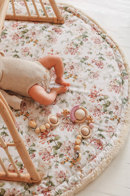 A round rug is perfect for a children's room or living room! The child can lie down and play comfortably on the thick carpet. The rug is multi-purpose and also suitable for a toddler's room as a bedmate. This Playmat is upside down. Available in three different sizes.