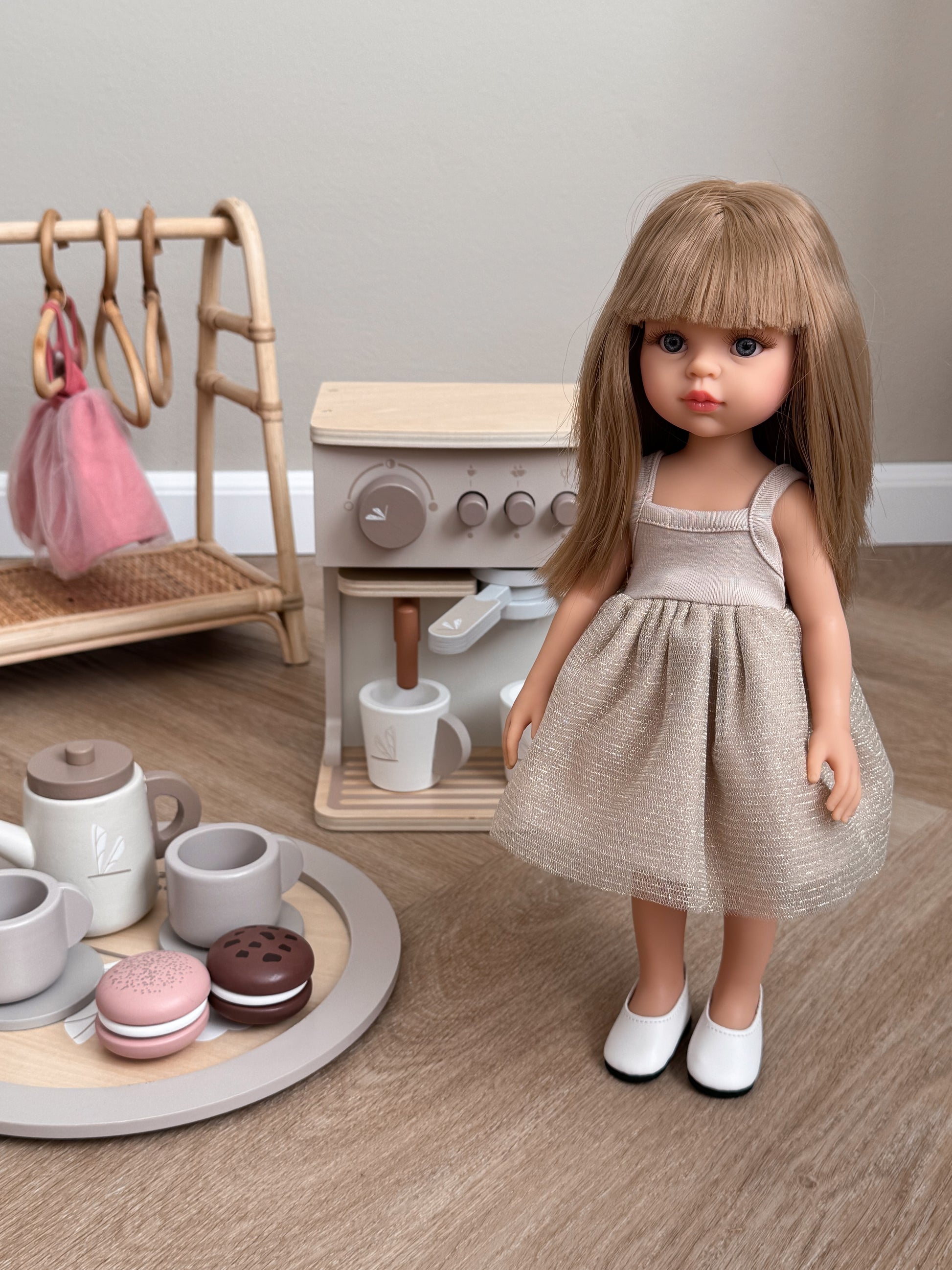 Carlan päällä on eksklusiivinen Minikane asu, joka kuuluu valitsemaasi settiin. Kaikki Minikane vaatteet ja kangastarvikkeet ovat suunniteltu ja valmistettu Ranskassa rajoitettuna erinä.