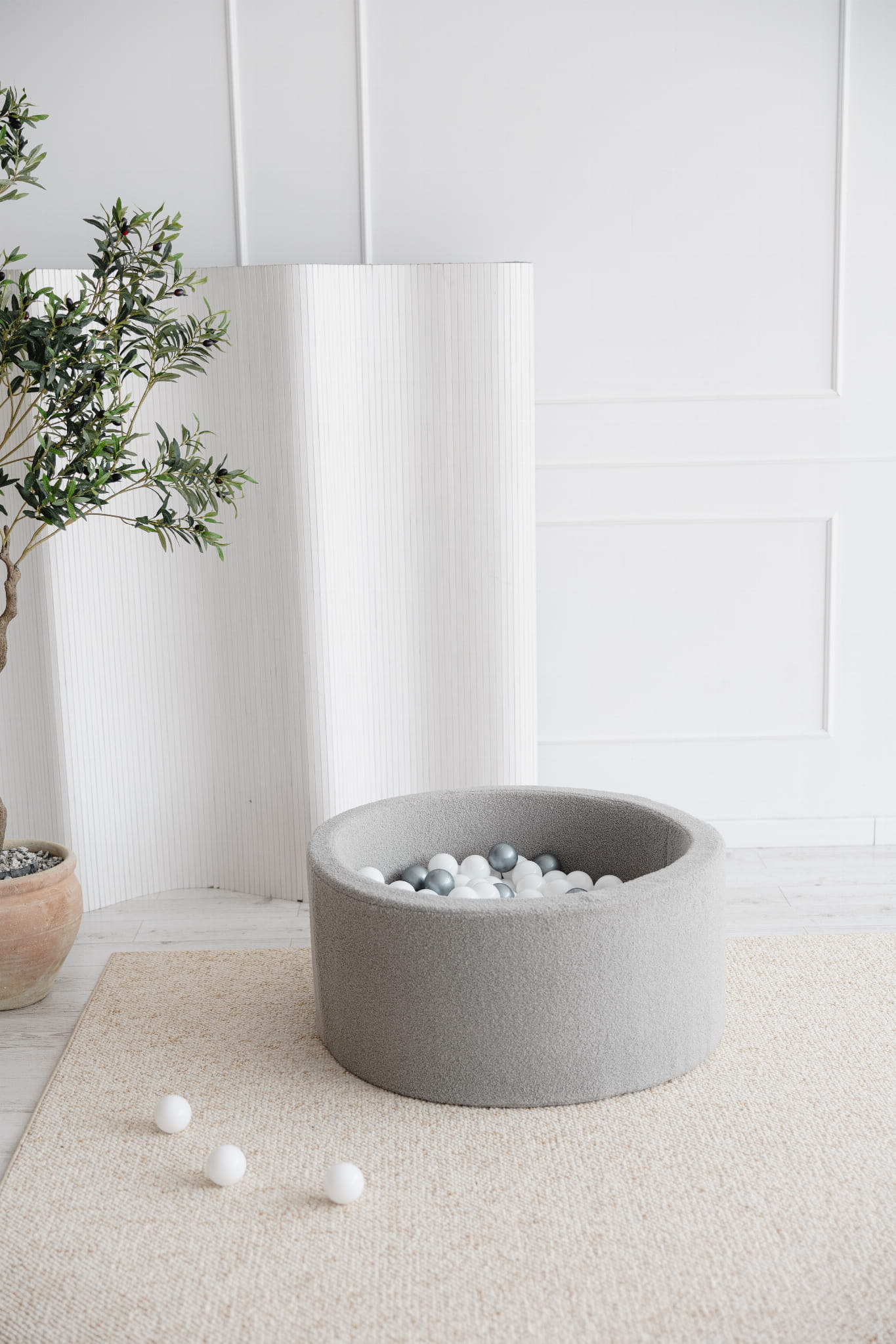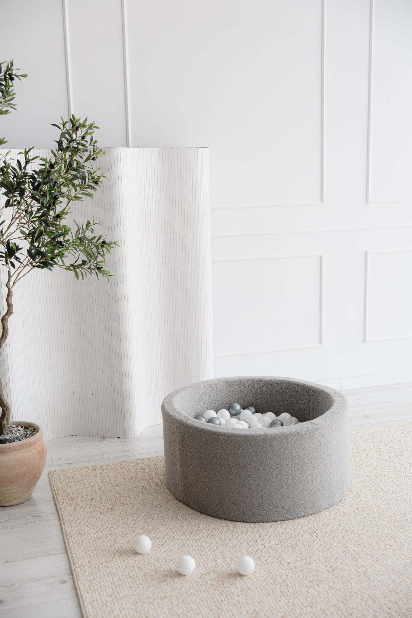 Fun for your child! The sturdy frame of the ball pit is made of foam and quickly returns to its original shape. It is comfortable and safe soft even for a smaller child. In addition to being fun, the ball pit develops motor skills. The frame of this ball pit is covered with a cute teddy fabric, which is really soft and stylish.