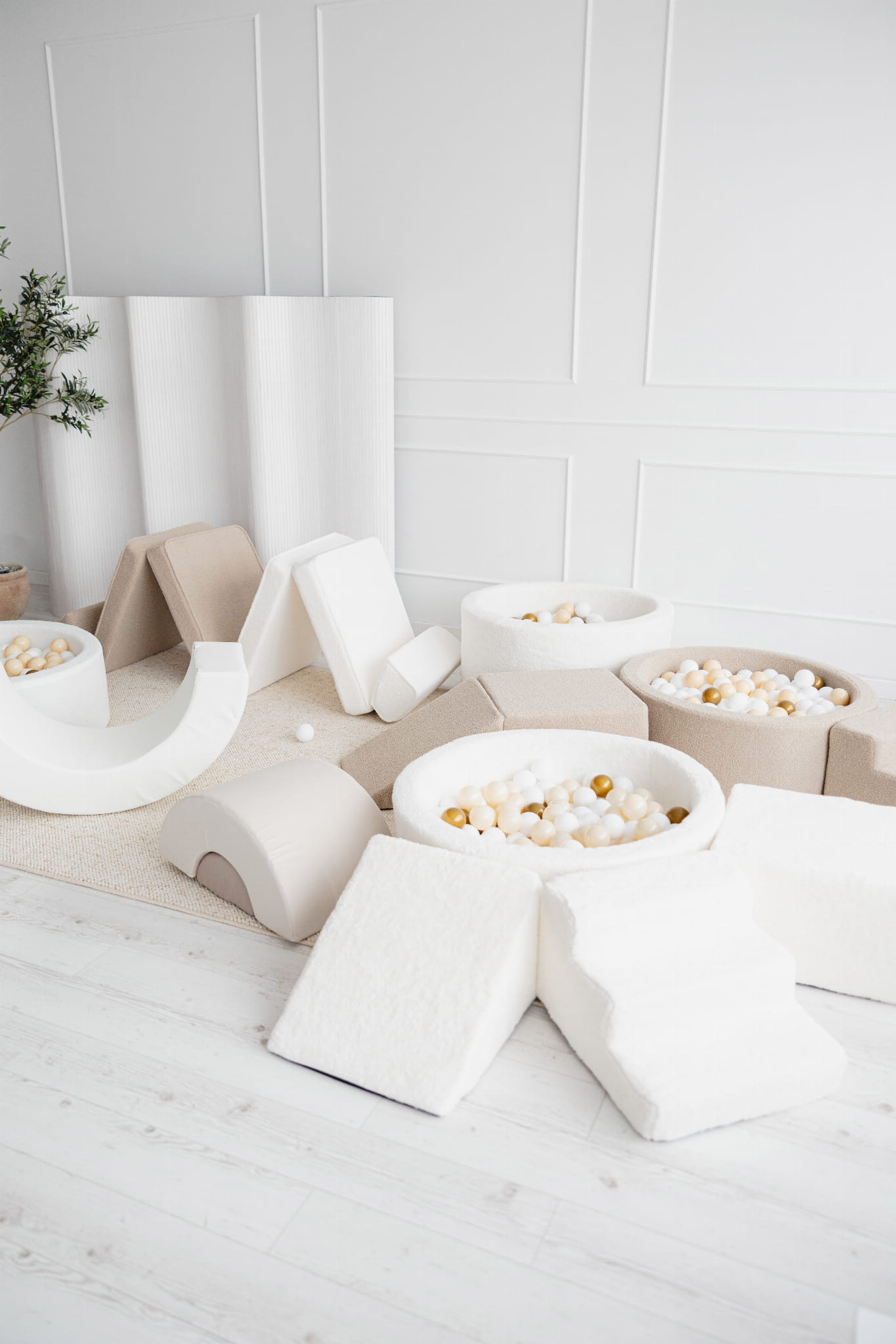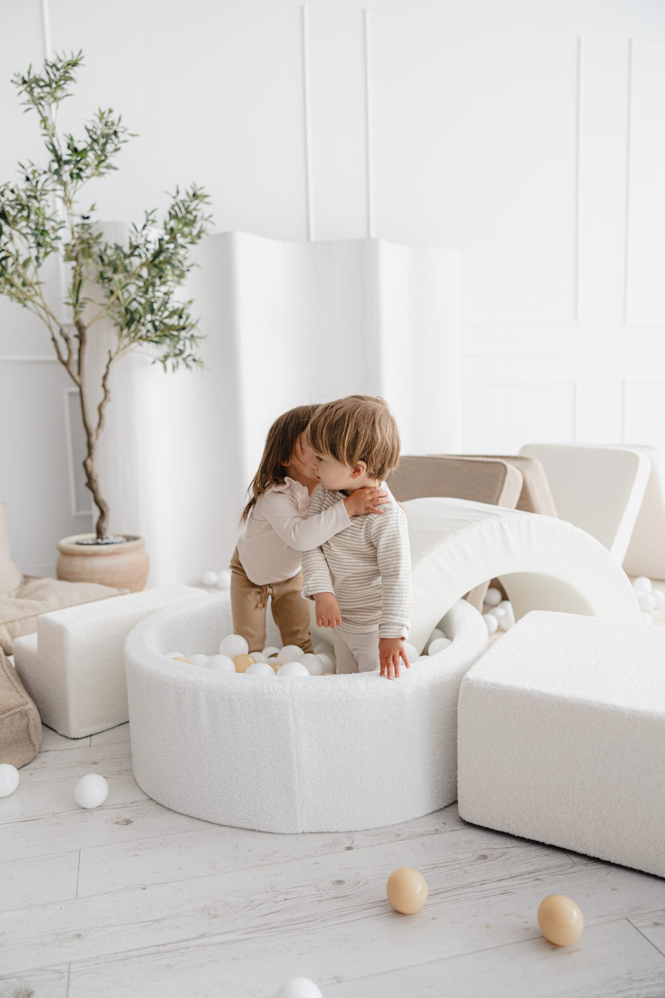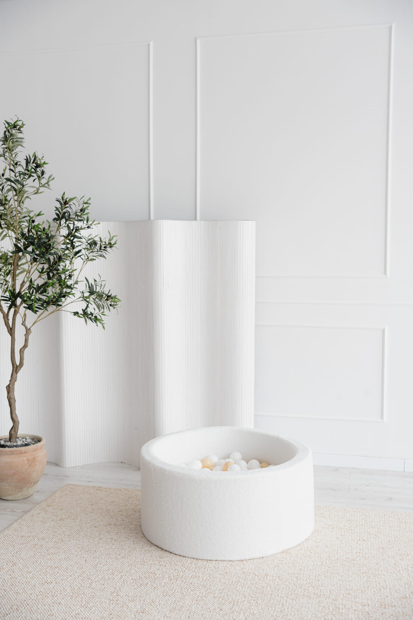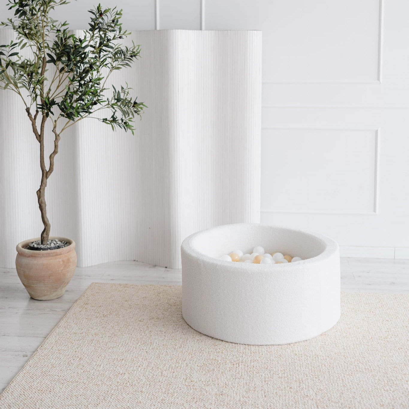 Fun for your child! The sturdy frame of the ball pit is made of foam and quickly returns to its original shape. It is comfortable and safe soft even for a smaller child. In addition to being fun, the ball pit develops motor skills. The frame of this ball pit is covered with a cute teddy fabric, which is really soft and stylish.