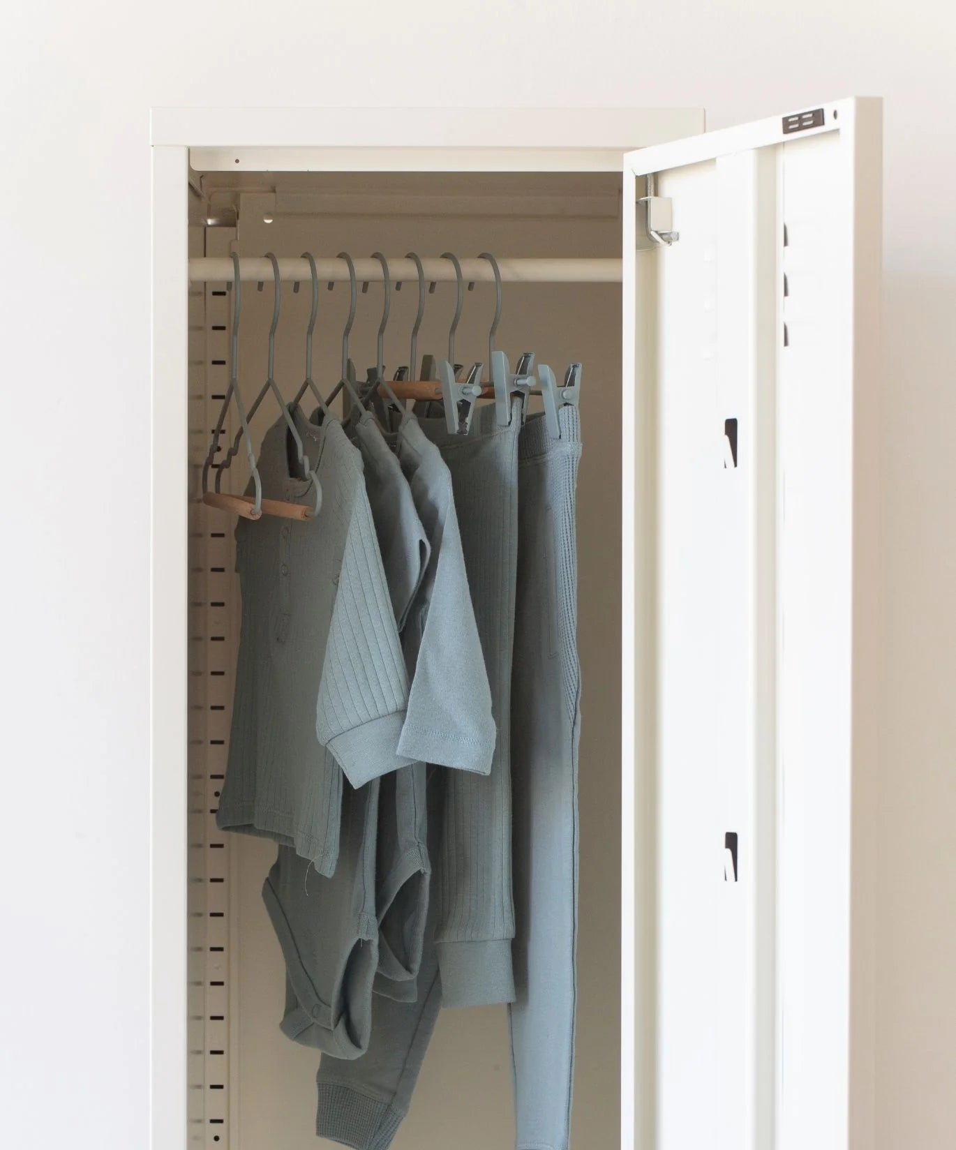 The hangers are sold in packs of 10 and fit perfectly. For The Skinny and The Twinny cabinets – and any other cabinet with hanging space.