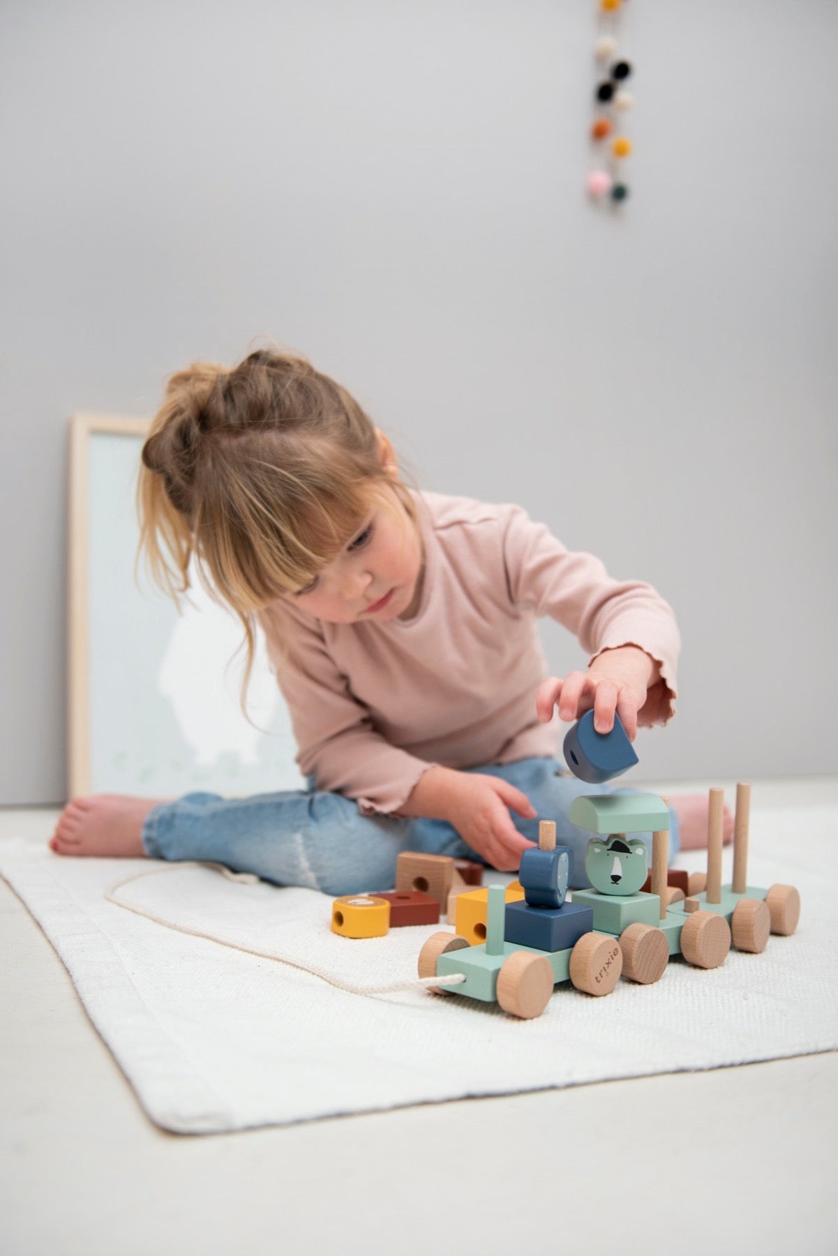 The pull toy is made of 100% FSC® certified wood. All paints on the product are water-based, child-friendly and non-toxic.