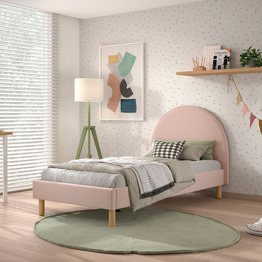 Moon-sarjan verhoiltu sänky on ajattoman tyylikäs valinta lasten- tai nuortenhuoneeseen. Sängyn 90 x 200 cm runko on verhoiltu pehmeällä valkoisella bouclé-kankaalla, joka tuo tilaan lämpöä ja kutsuvaa tunnelmaa. Pyöristetty pääty viimeistelee kokonaisuuden pehmeällä muotoilulla.
