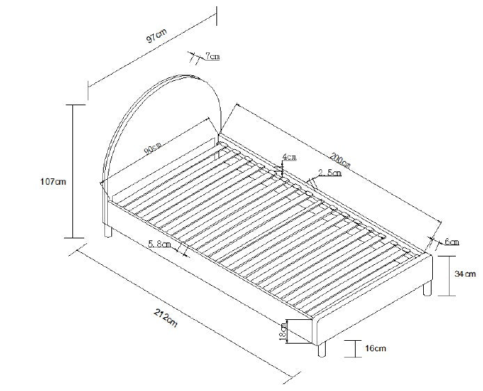 Ulkomitat: 212 x 97cm, korkeus 105 cm.