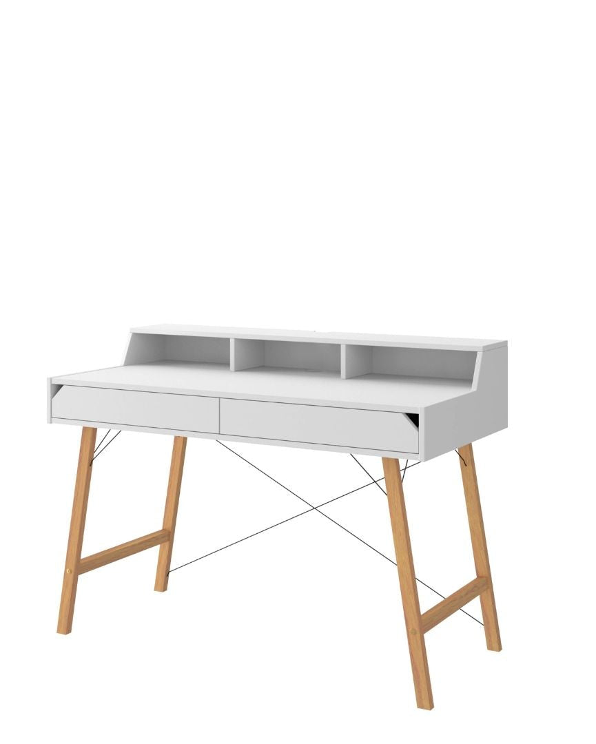 Tämä työpöytä on suunniteltu huolellisesti yksityiskohtia ajatellen. Yksinkertaisen muodon ansiosta se tuo minimalistisen tyylin työtilaasi. Pöydässä on kaksi tilavaa laatikkoa, reunukset estämässä tavaroiden putoamista. Löytyy reikä johtojen sijoittelulle.
