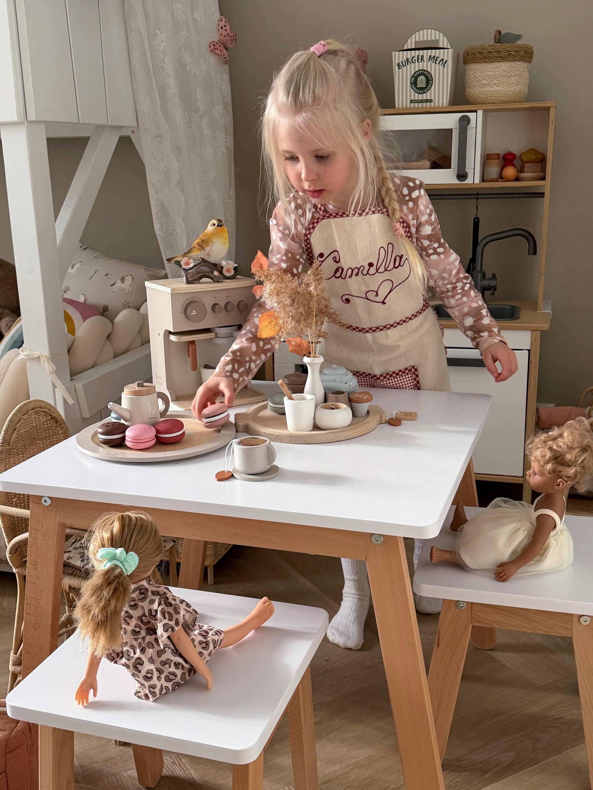 Woody-pöytä- ja jakkarakokoelma on suunniteltu pienille lapsille ja on jokaisen lastenhuoneen must have -tuote. Se luo paikan oppimiseen, leikkiin, keskusteluun ja taiteellisiin aktiviteetteihin sekä auttaa tilan järjestämisessä, tukien näin lapsen luonnollista kehitystä. Pöytä ja jakkarat voivat myös toimia monikäyttöisinä kalusteina, kuten yöpöytänä tai apupöytänä. Ne ovat upea lisä huoneisiin, jotka on sisustettu kalusteillamme.