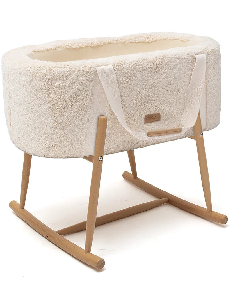 Kahvojensa lisäksi KUKO Moses -korissa on valinnaisesti luonnonpuinen tuki ja se voidaan muuntaa silmänräpäyksessä kevyesti keinuvaksi kehdoksi.