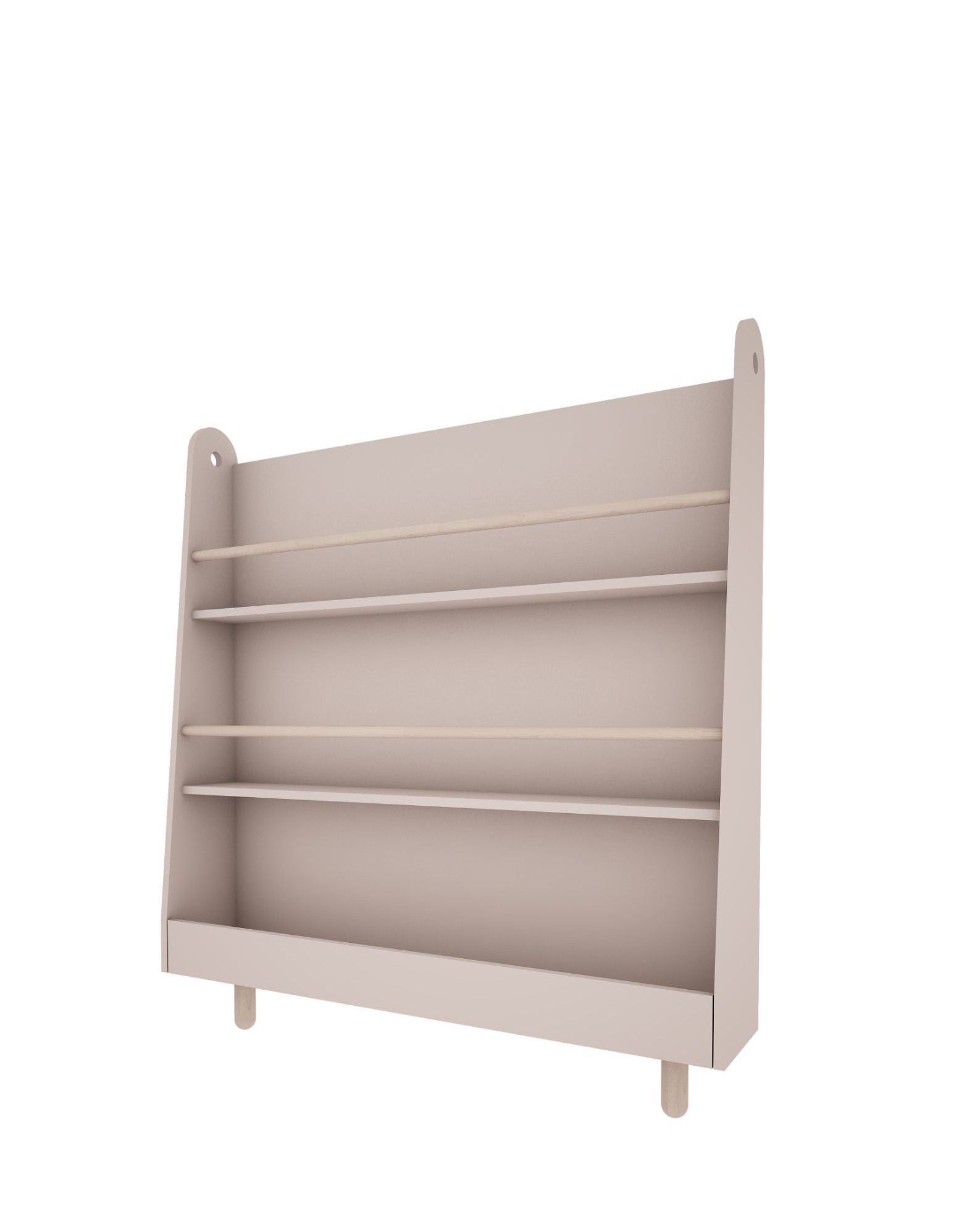 Kirjahyllyssä on kolme tilavaa hyllytasoa, joissa kirjat asetetaan kannet eteenpäin. Tämä visuaalinen esillepano houkuttelee lasta tutkimaan kirjoja ja tekee lukemisesta entistä innostavampaa.