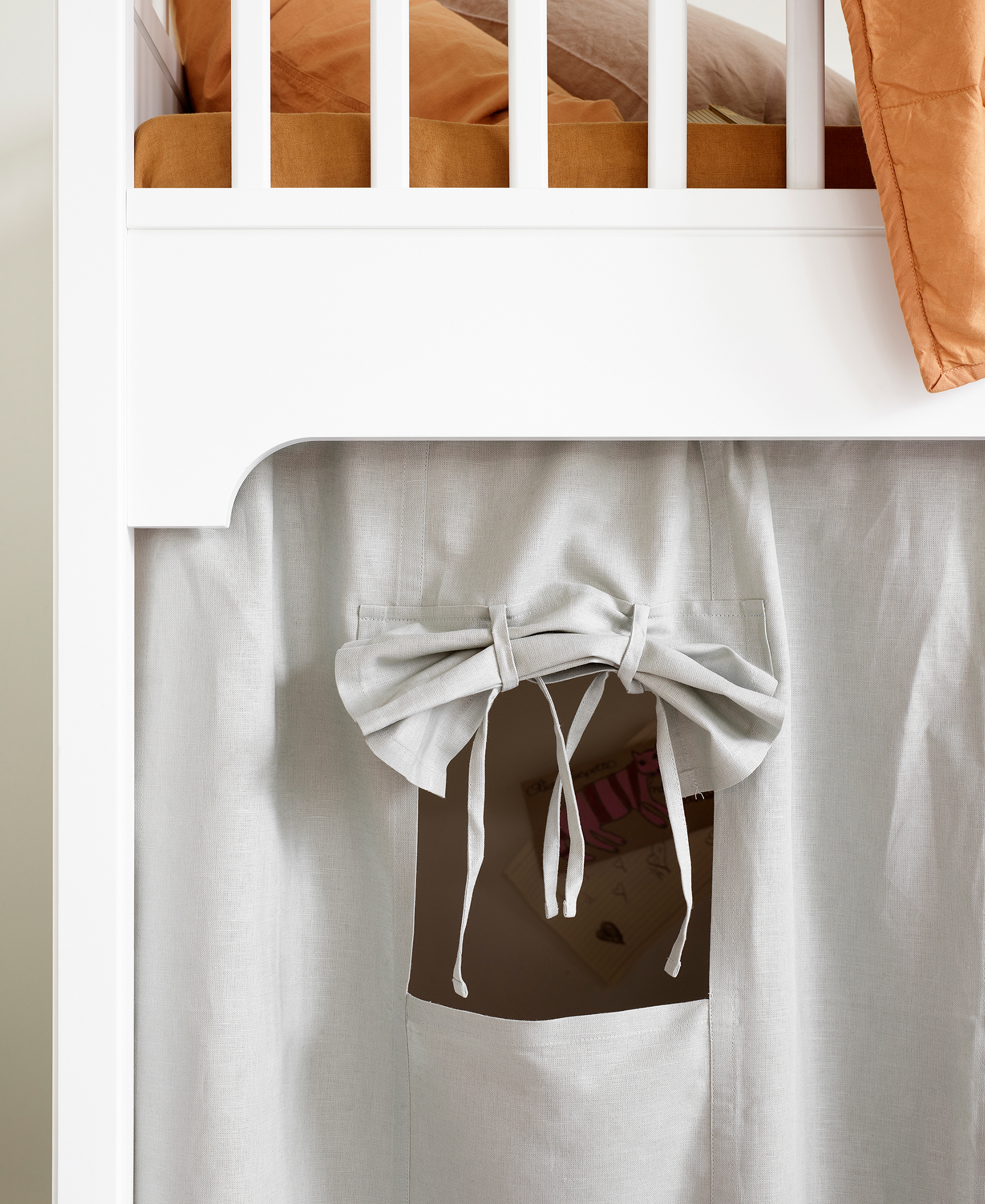 Sängyn yläosan alla on valkoiset paneeliseinät, jotka muodostavat pienen kodikkaan tilan. Sen voi sisustaa itse haluamallaan tavalla tai Oliver Furnituren lastenhuonekaluilla.