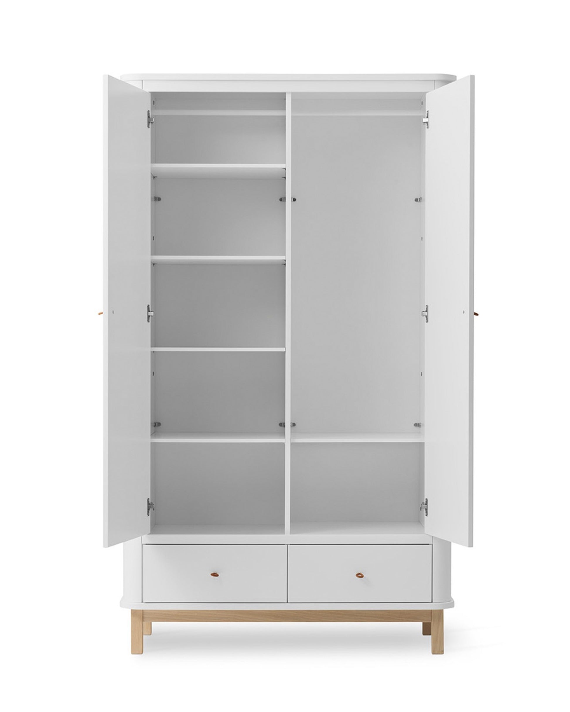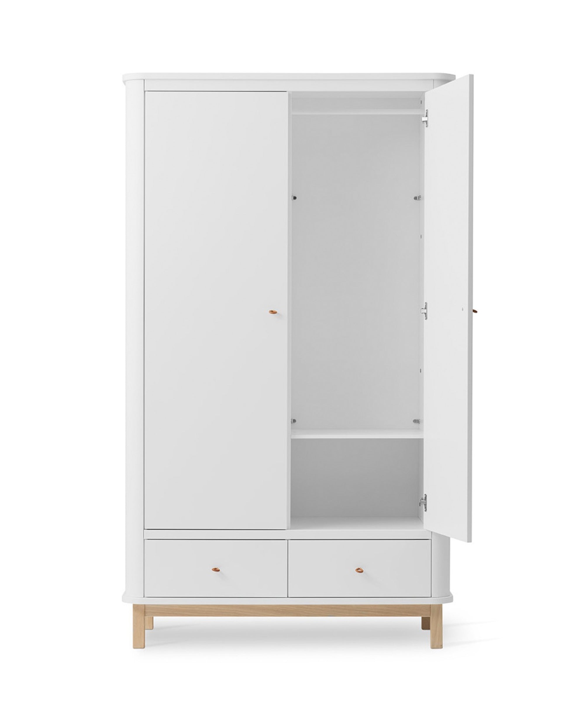 Wood-vaatekaappi on ajaton ja tyylikäs vaatekaappi, joka sopii saumattomasti lastenhuoneeseen. Pyöristetyt kulmat ja huoliteltu muotoilu tekevät ilmeestä kevyen ja turvallisen.