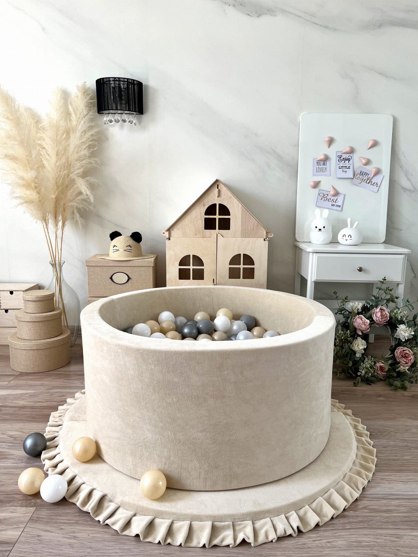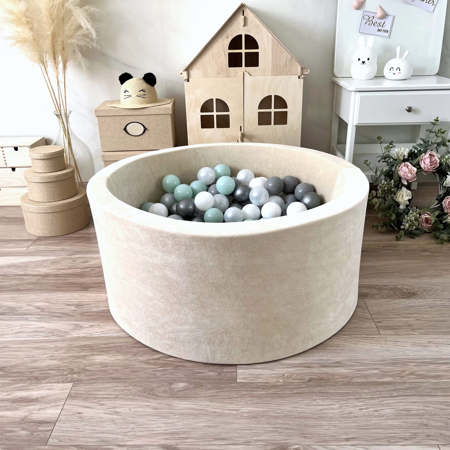 Hauskaa tekemistä lapselle! Pallonmeren tukeva runko on valmistettu vaahtomuovista ja palautuu alkuperäiseen muotoon nopeasti. Se on mukava ja turvallisen pehmeä pienemmällekin lapselle. Hauskuuden lisäksi pallomeri kehittää motorisia taitoja. Tämän pallomeren runko on päällystetty samettikankaalla.