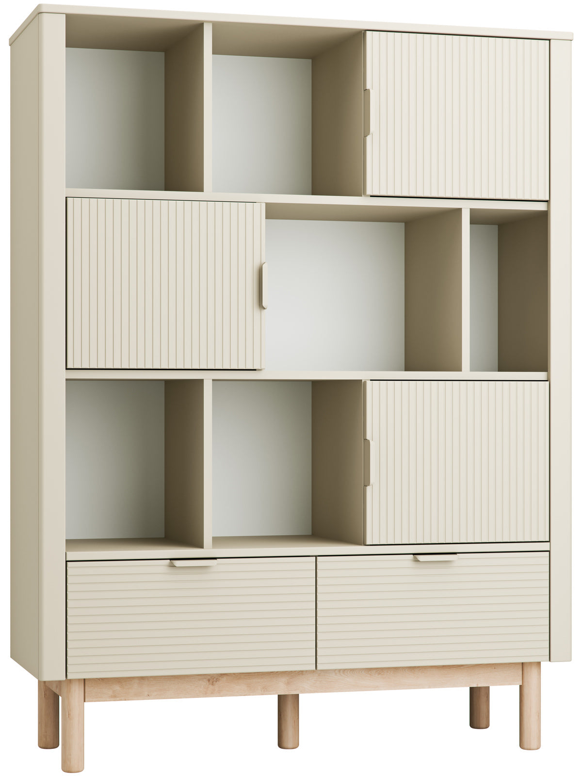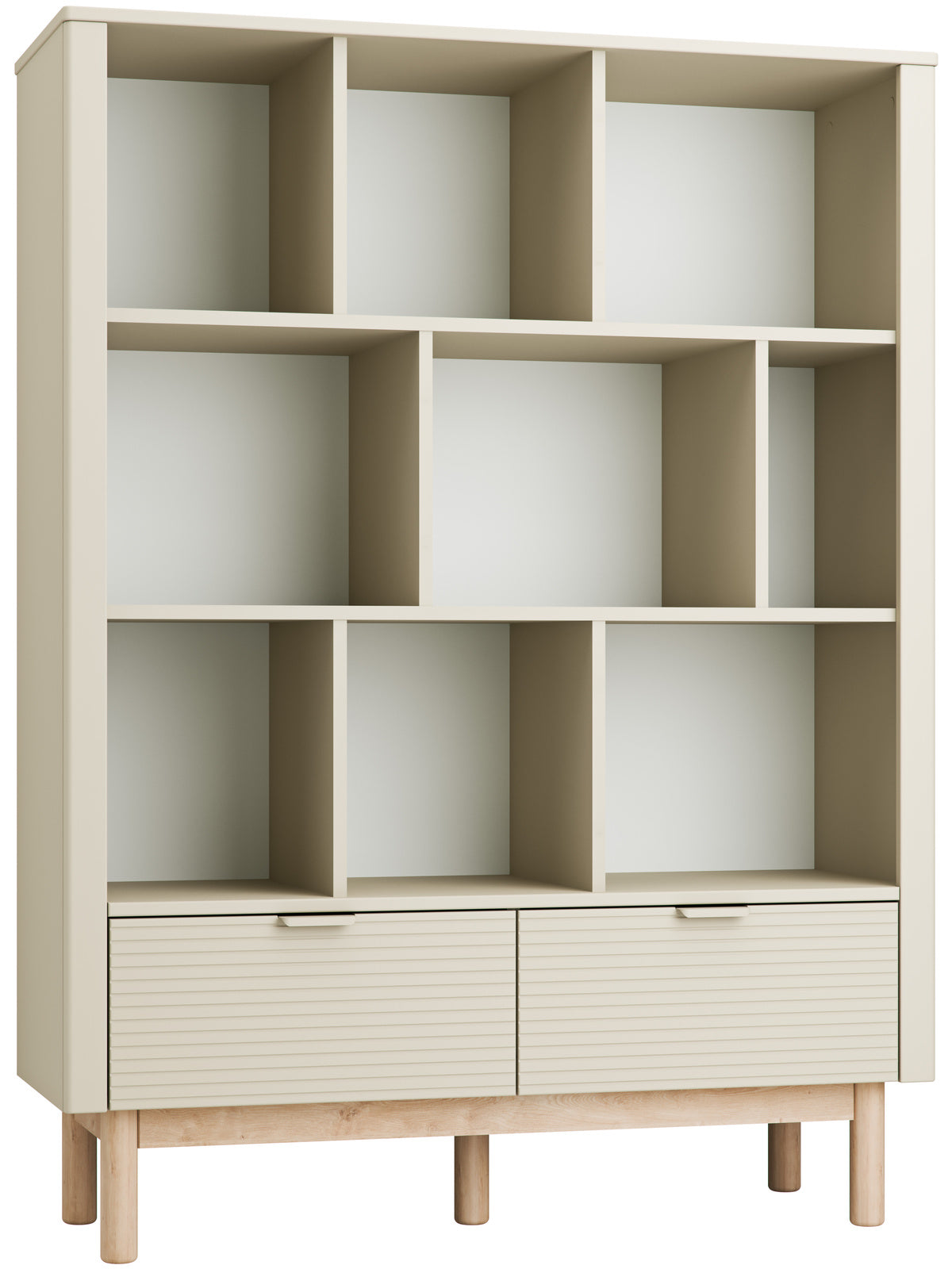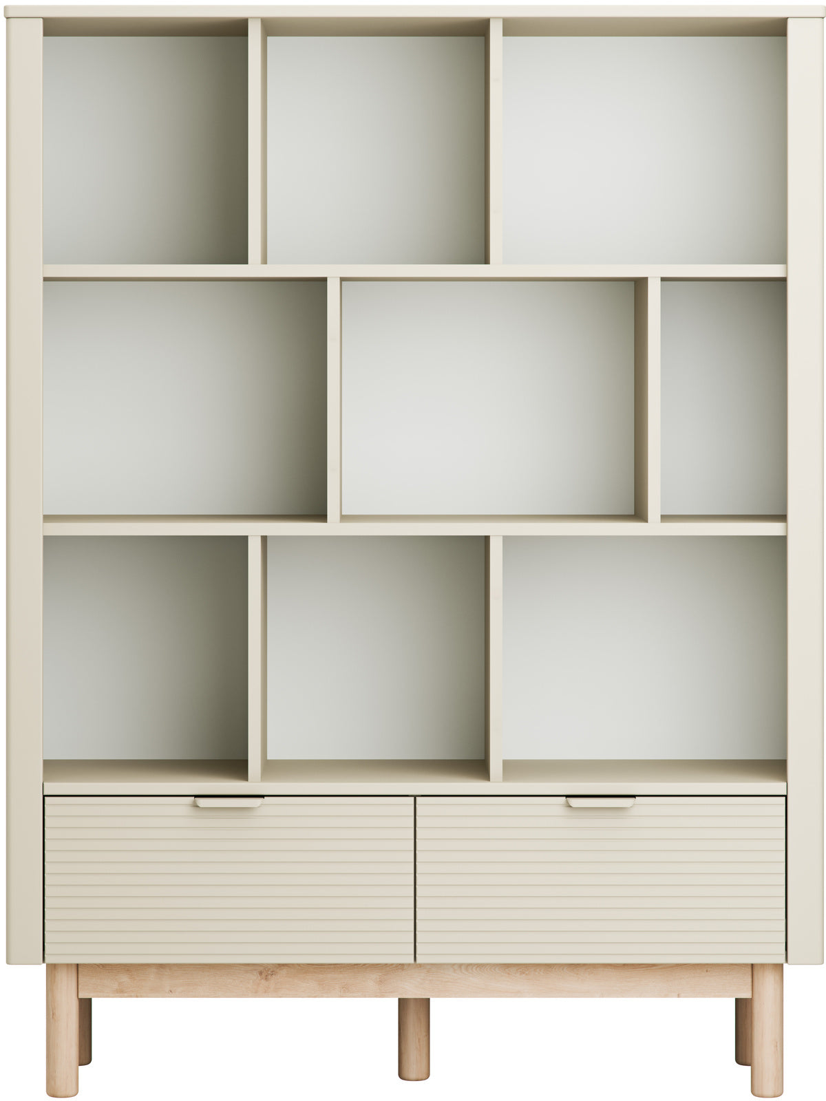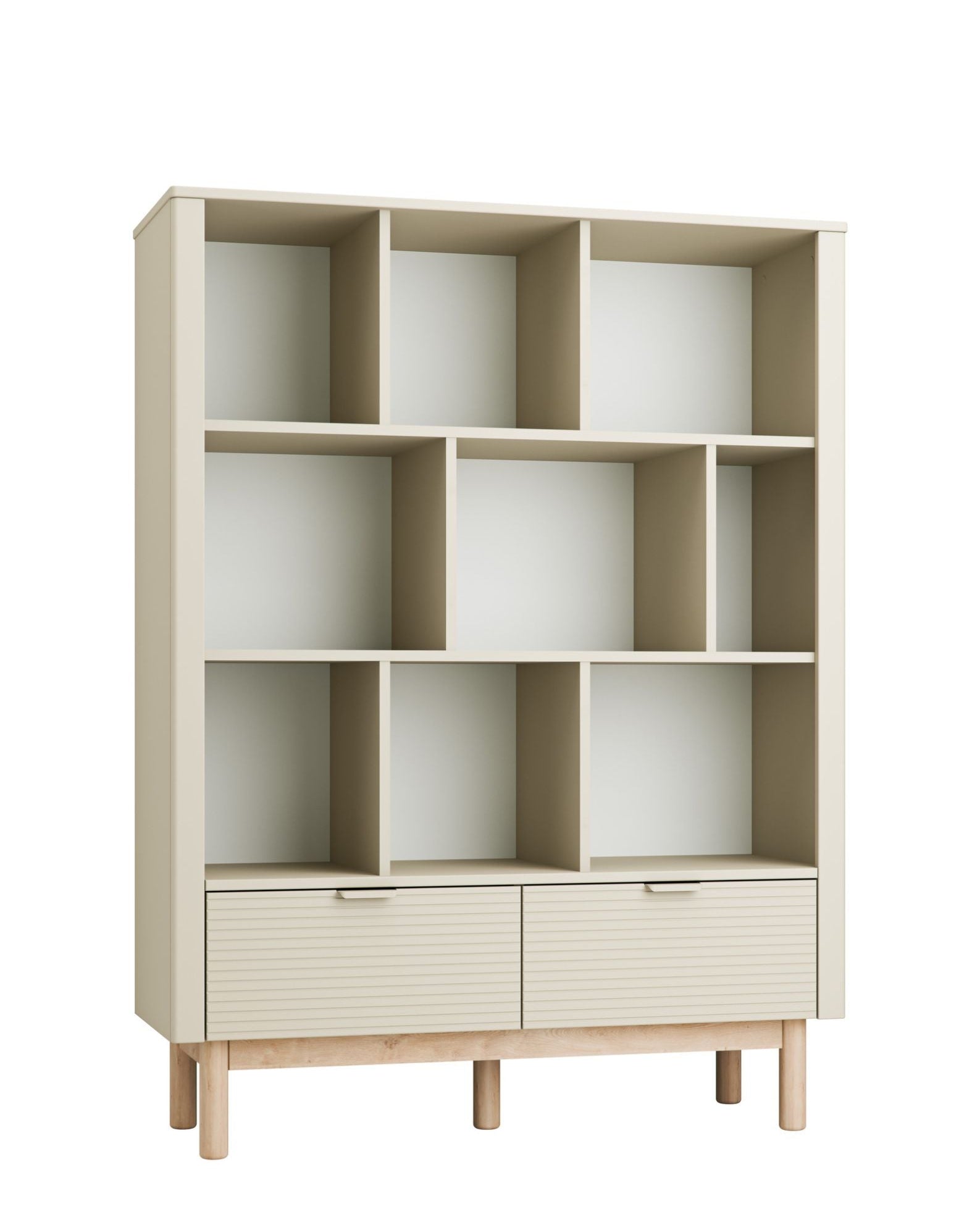 Miloo-leveä kirjahylly yhdistää modernin muotoilun ja käytännöllisen säilytyksen. Kirjahyllyssä on kaksi pehmeästi sulkeutuvaa laatikkoa. Halutessasi voit lisätä kolmiosaisen oven, jolla saat osan hyllystä suljettuun säilytykseen.