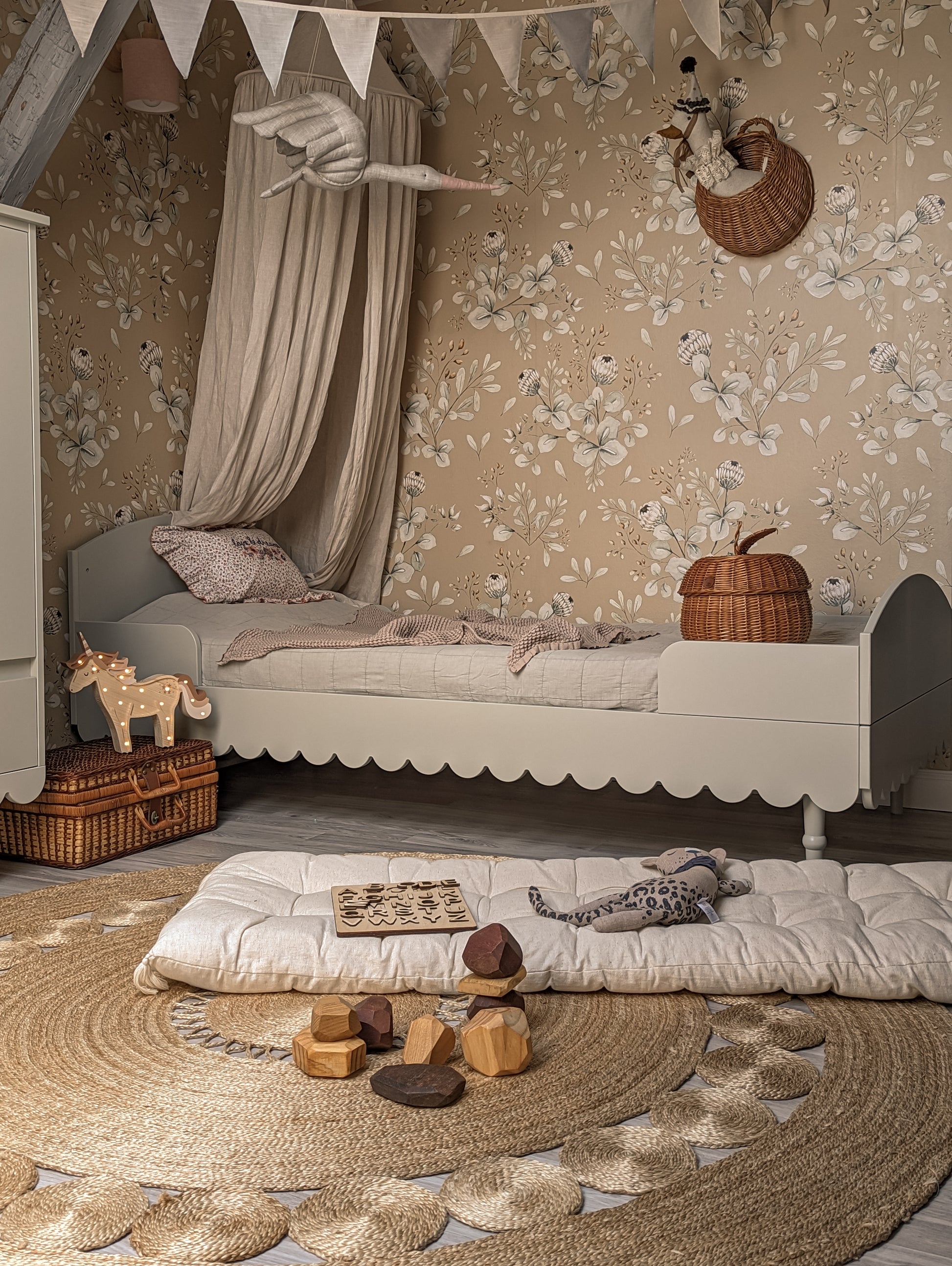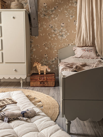 Satumaisen kaunis vintage-henkinen sänky. Sängyn turvalaidat voi irrottaa, mikäli niille ei ole tarvetta. Toimitetaan itsekoottavana pakettina, joka sisältää kaikki kokoamiseen tarvittavat osat ja ohjeet.
