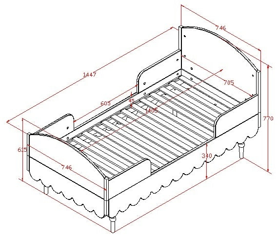 Sängyn runko: 94x204 cm, korkeus 77 cm