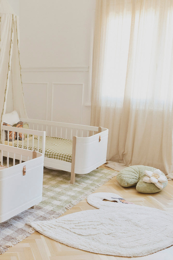 Kellahda ja leiki joutsenystäväsi kanssa. Tämä valkoinen, pestävä matto on pehmeä ja helppo pitää puhtaana. Lyhyt nukka tekee siitä turvallisen vauvoille ja mukavan leikkiä. Suloiset yksityiskohdat luovat kodikkaan ja taianomaisen tunnelman.