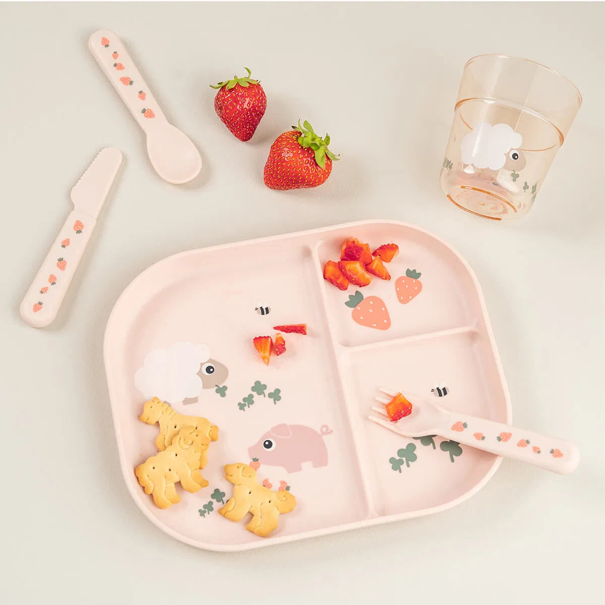 Mikron- ja astianpesukoneen kestävä lasi on suunniteltu helpottamaan arkea ja kestämään käyttöä. Suloinen puuterinsävy ja leikkisä Pigee & Sheepy -kuvitus tuovat iloa ruokailuhetkiin. Anna Deer friends -ystävien piristää lapsesi juomahetkiä!
