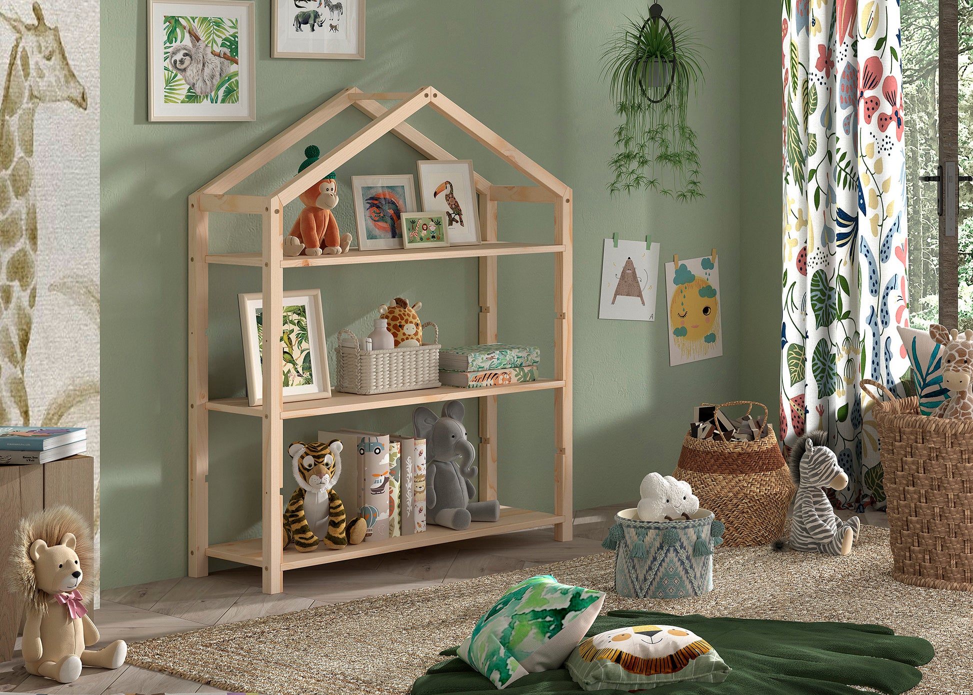DALLAS-hylly on kompakti muotoilultaan, mikä tekee siitä ihanteellisen kirjojen ja koristeiden kauniiseen esittelyyn. Leikkisä talonmuotoinen muotoilu tuo uniikin vivahteen mihin tahansa lastenhuoneeseen. Suloinen sisustuselementti, joka ansaitsee paikkansa kodin sydämessä.