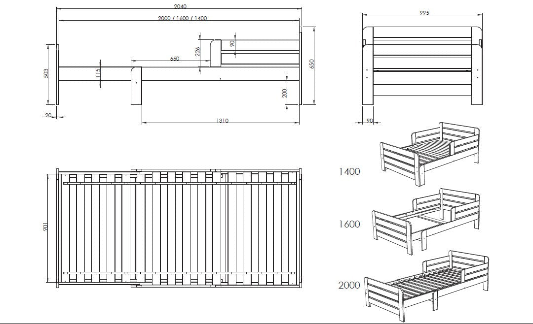 Suosittelemme: yhteensopivaa patjaa, jota voidaan käyttää sekä koossa 90 × 140 cm että 90 × 200 cm, varmistaen mukavuuden sängyn muunnosvaiheissa (ostettavissa erikseen).