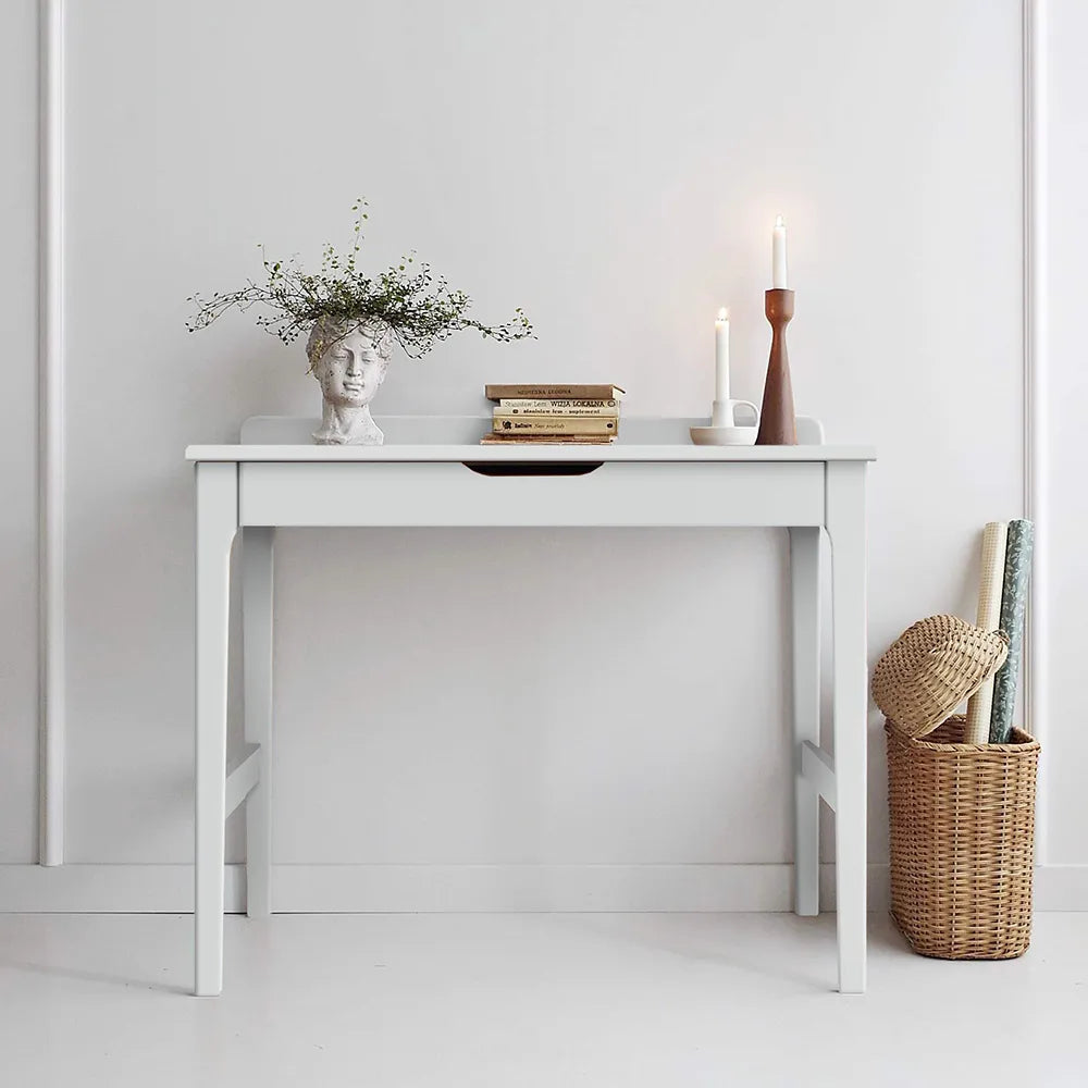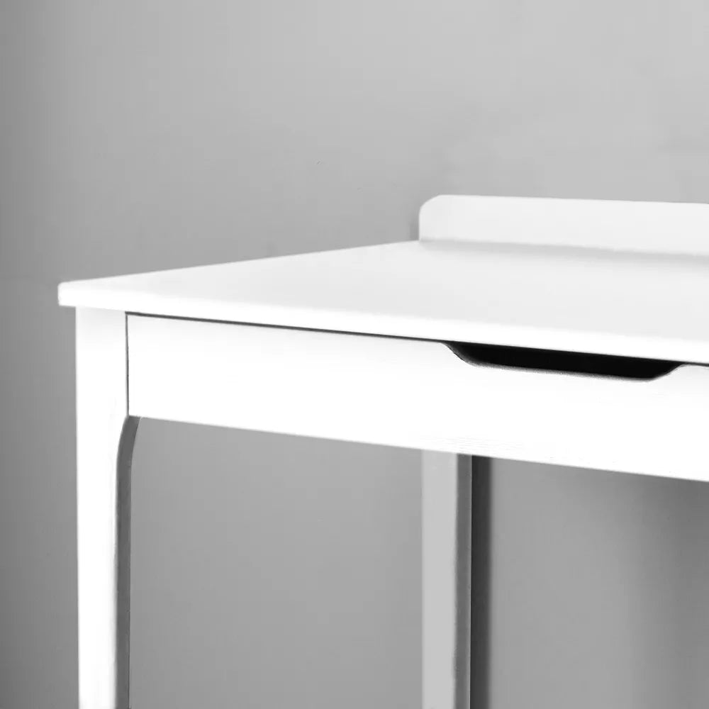 Tämä kaunis valkoinen työpöytä on täydellinen yhdistelmä tyyliä ja käytännöllisyyttä. Se on valmistettu korkealaatuisista materiaaleista ja siinä on irrotettava koristelista.