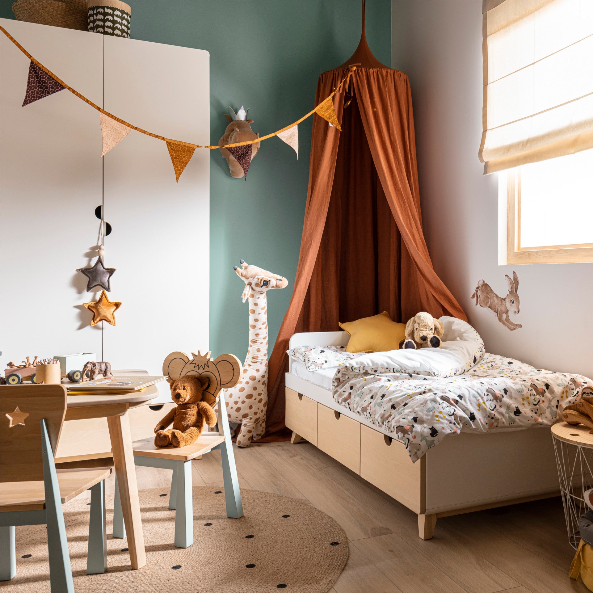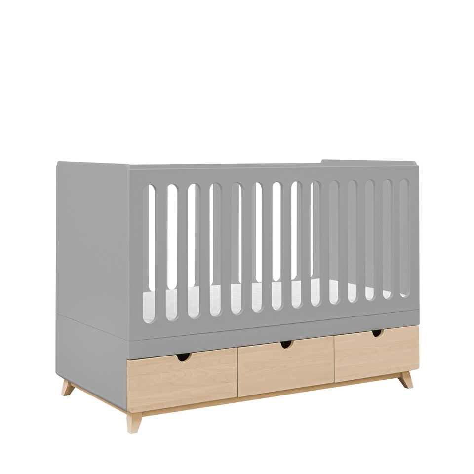 Under sängen finns tre rymliga och praktiska lådor som rymmer alla nödvändigheter från de första dagarna i livet och framåt. Lådorna glider smidigt på dolda metallskenor med en ljudlös stängningsmekanism. Sängen är behandlad med barn- och miljövänliga lacker, och träet som används i dess konstruktion kommer från certifierade, välskötta skogar.