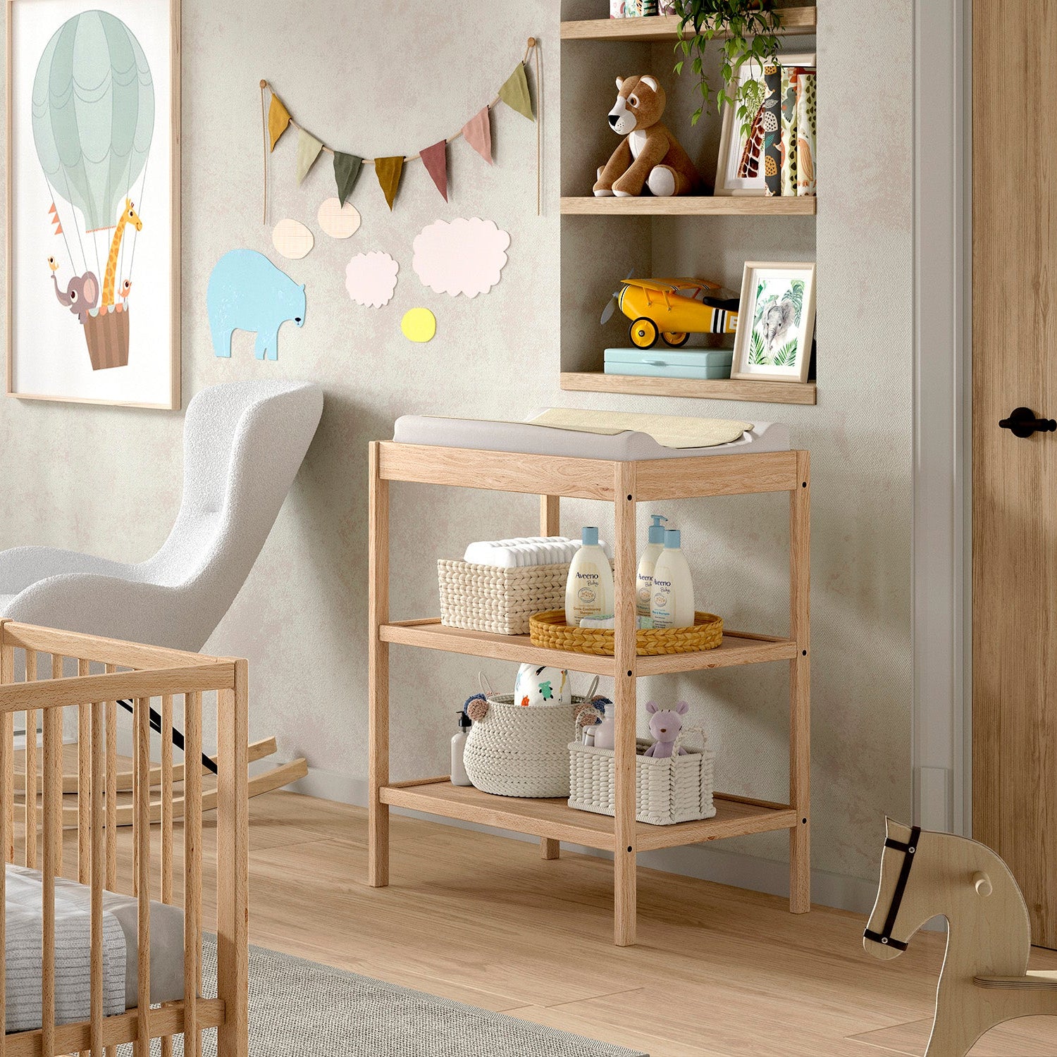 Tutustu DINO-hoitopöytään luonnonpuusta – täydellinen yhdistelmä käytännöllisyyttä ja estetiikkaa moderniin lastenhuoneeseen. Huolellisesti valmistettu hoitopöytä tarjoaa tilavan hoitoalustan sekä kaksi avointa hyllyä, joiden ansiosta kaikki vauvan hoitotarvikkeet ovat helposti käden ulottuvilla. Luonnonpuinen viimeistely tuo tilaan lämpöä, ja selkeä muotoilu sopii monenlaisiin sisustustyyleihin ja teemoihin.