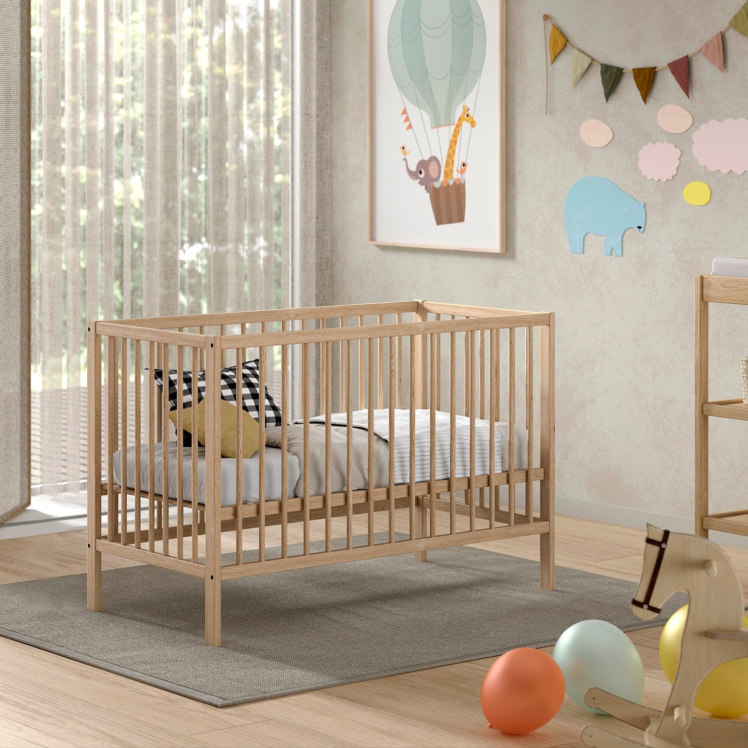 DINO-pinnasänky (60 × 120 cm) luonnonvärisenä on kaunis lisä mihin tahansa lastenhuoneeseen ja tarjoaa samalla mukavuutta ja turvallisuutta. Se on täydellinen valinta vanhemmille, jotka etsivät kestävää, tyylikästä ja käytännöllistä vauvansänkyä. Sälepohja on säädettävissä kolmeen eri korkeuteen, joten sänky mukautuu helposti vauvan kasvaviin tarpeisiin. Luonnonpuu ja selkeä muotoilu sopivat monenlaisiin sisustustyyleihin ja teemoihin.