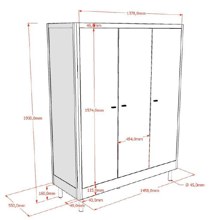 Mått: 146 x 55 cm, höjd 190 cm.