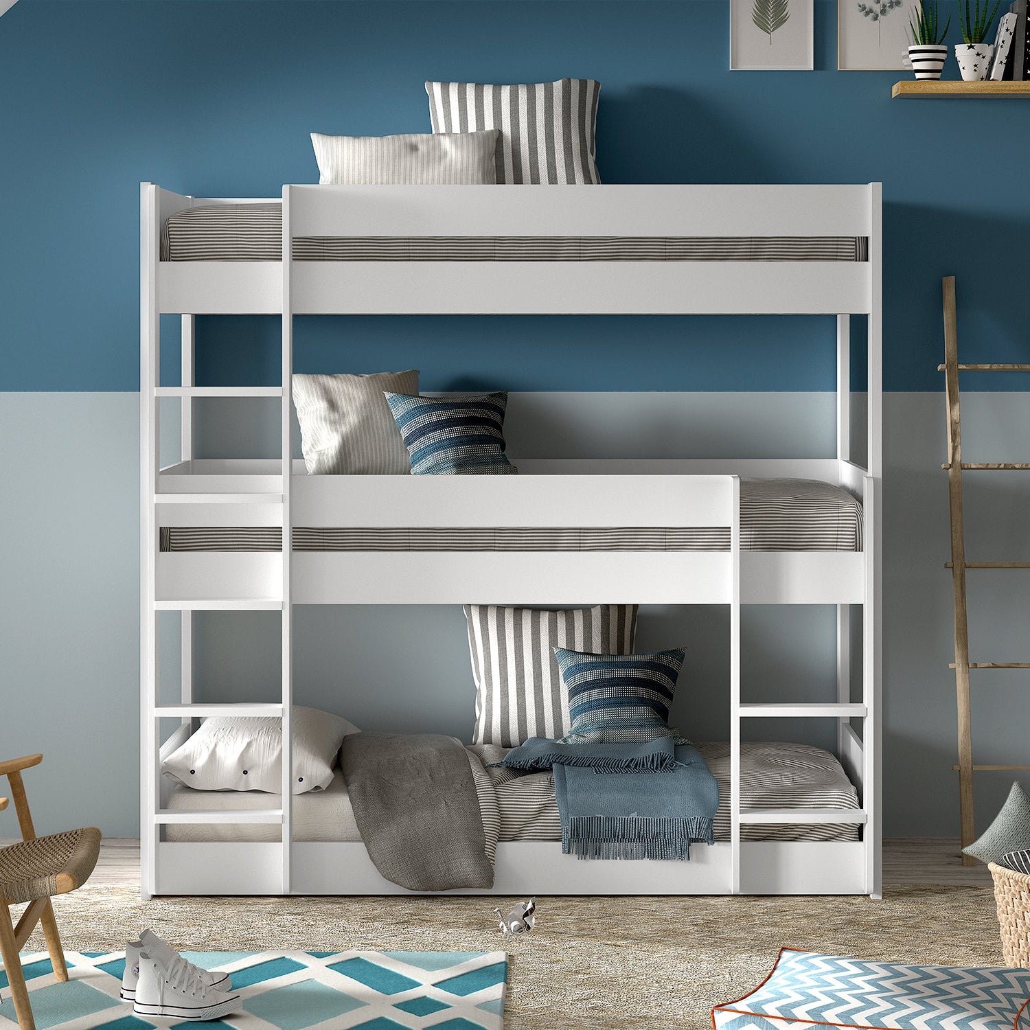 SCOTT-kerrossänky kolmelle (90 x 200 cm) tarjoaa kolme nukkumapaikkaa ja on suunniteltu huolellisesti yksityiskohtia ja käytännöllisyyttä ajatellen. Se on tyylikäs ja fiksu tilaa säästävä ratkaisu, joka on valmistettu valkoiseksi lakatusta skandinaavisesta männystä.