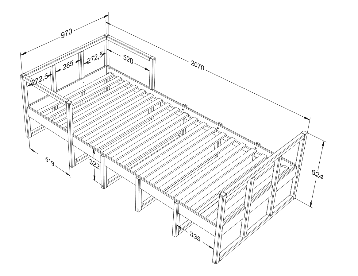 Sängram: 97x207 cm, höjd 63 cm