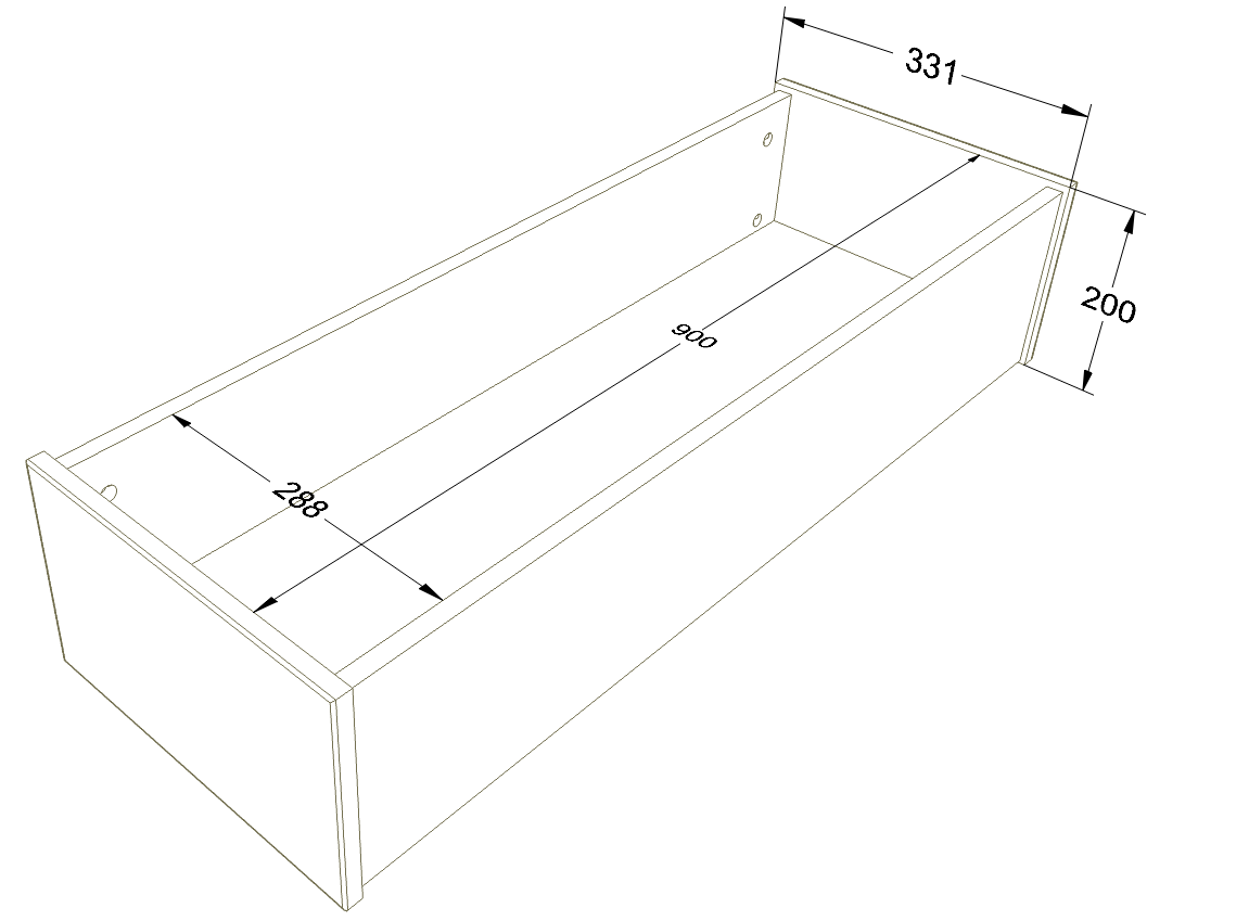 Lådans mått: 93x23 cm, höjd 20 cm.